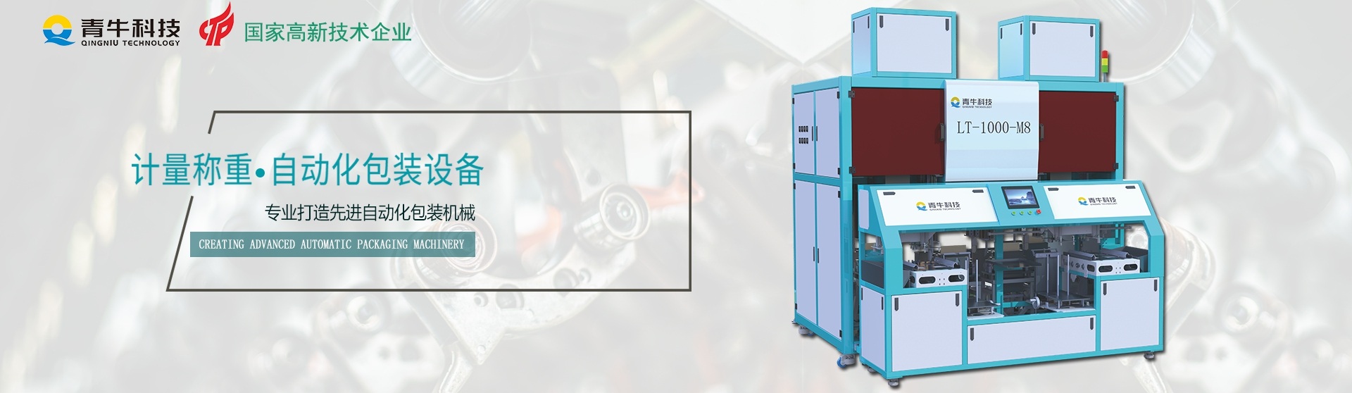 因為專注,所以專業(yè),漳州青??萍加邢薰緦Wb領(lǐng)域、創(chuàng)造包裝精品、不斷致力于智能化包裝設(shè)備的研發(fā)制造,以更智能、高能、可靠的產(chǎn)品來滿足日新月異的市場需求。力爭成為國內(nèi)包裝自動化技術(shù)的領(lǐng)頭者,為我國包裝自動化事業(yè)添磚加瓦。